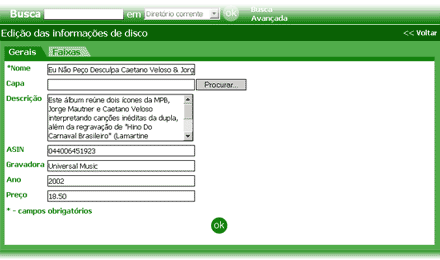 A figura a seguir ilustra a tela de edição de um disco.