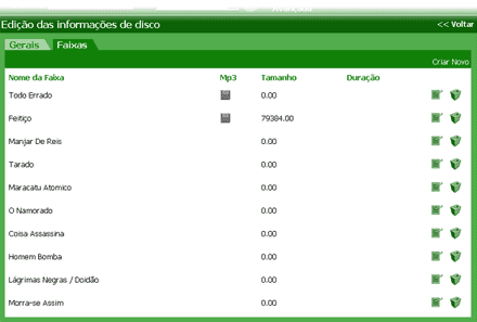 A figura a seguir ilustra a tela de edição do disco, na aba Faixas.